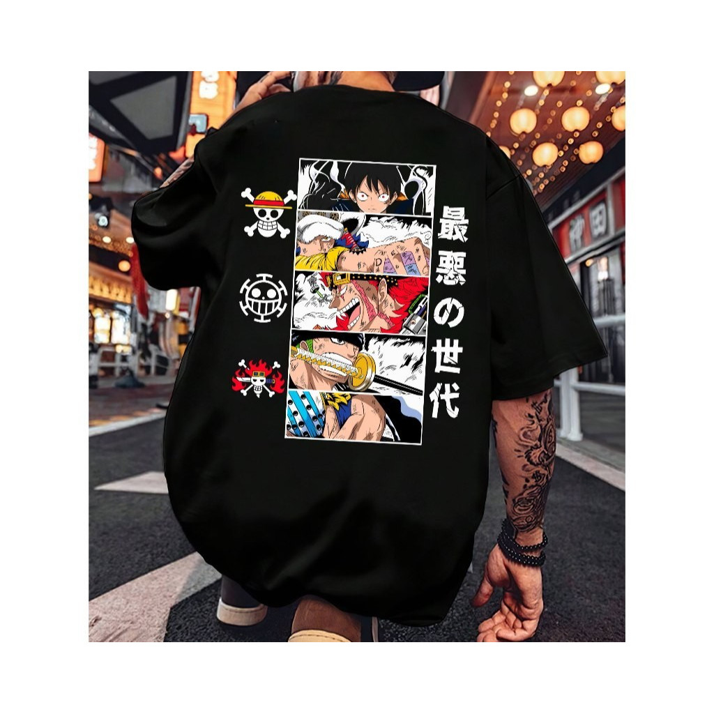 Camiseta Unissex Básica Streetwear Anime One Piece Mangá Frente e Costas Personagens 100% Algodão