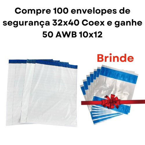 Kit 100 unidades Envelope de segurança Coex branco 32x40 com aba adesiva, correios e ganhe 50 AWB (saco para nota fiscal) 10x12