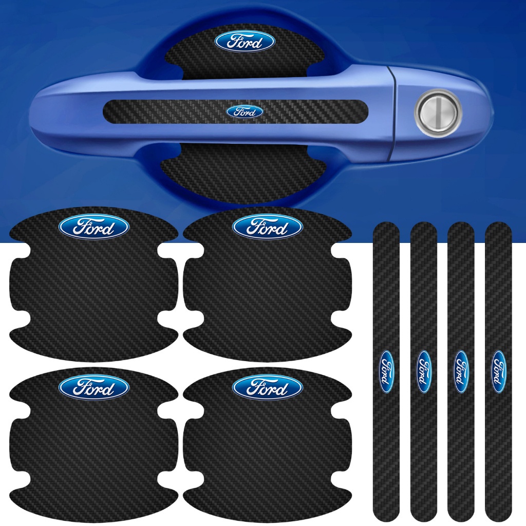 Kit 8 Peças Adesivo Protetor Maçaneta de Porta Ford Fibra de Carbono Carro Anti Arranhões