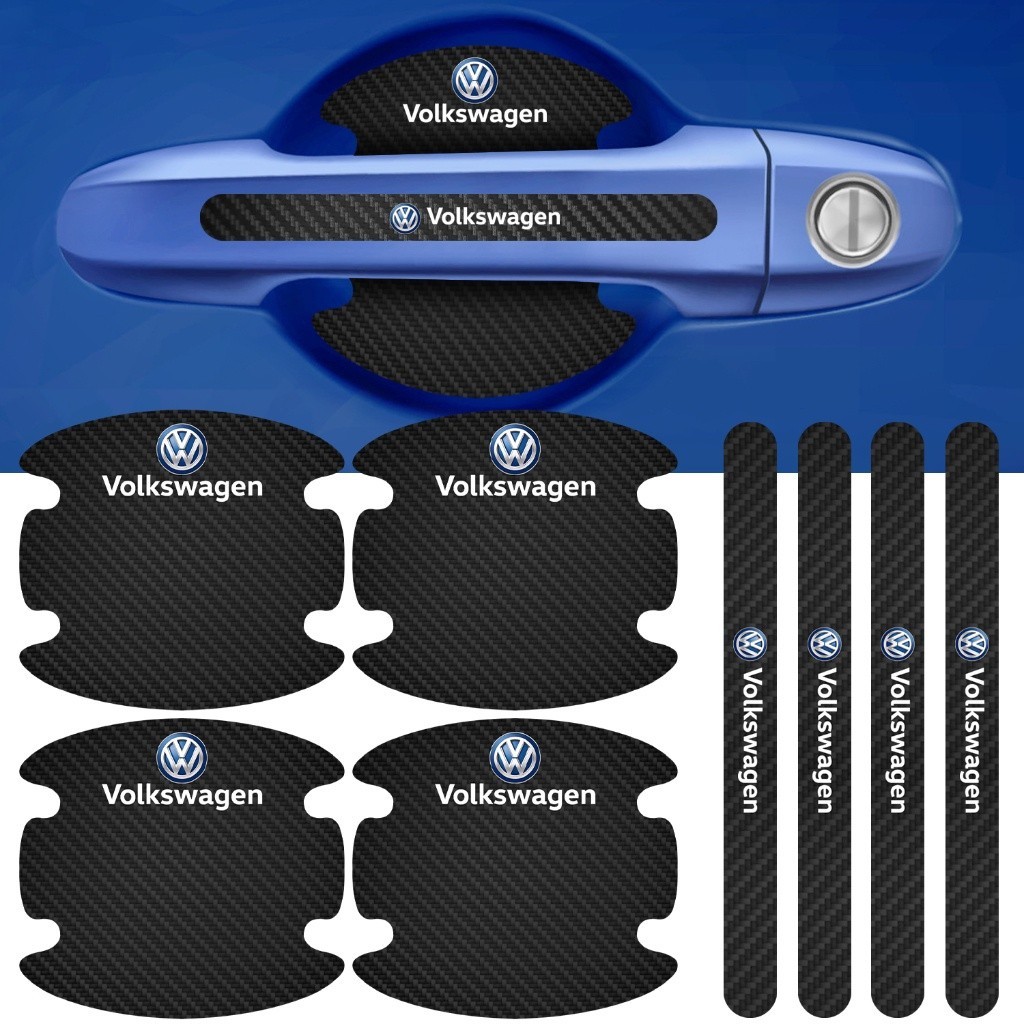 Kit 8 Peças Adesivo Protetor Maçaneta de Porta Volkswagen Vw Fibra de Carbono Carro Anti Arranhões