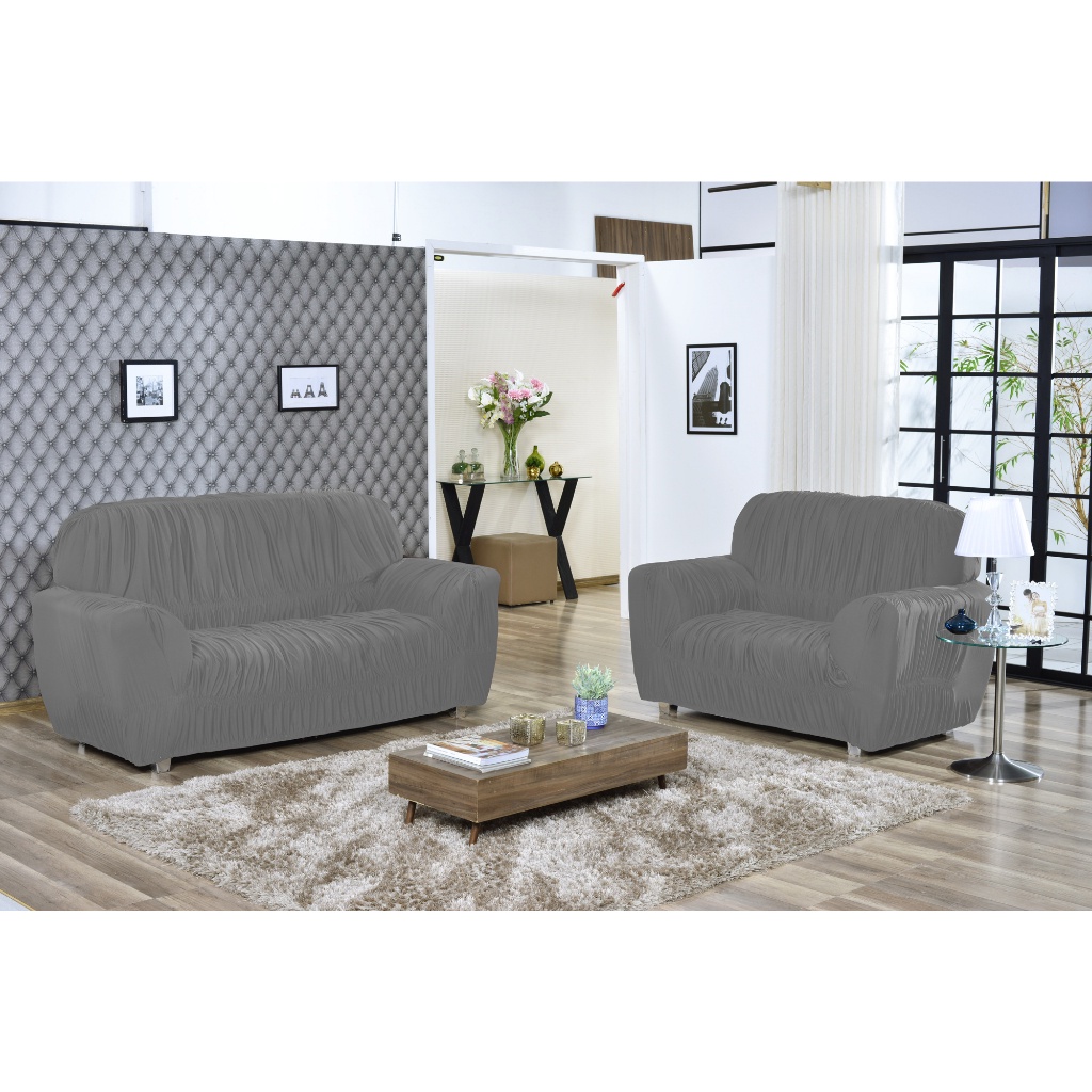 Kit Capa de Sofá 3 E 2 Lugares Retrátil 21 Elásticos Malha Gel Lisa Varias Cores