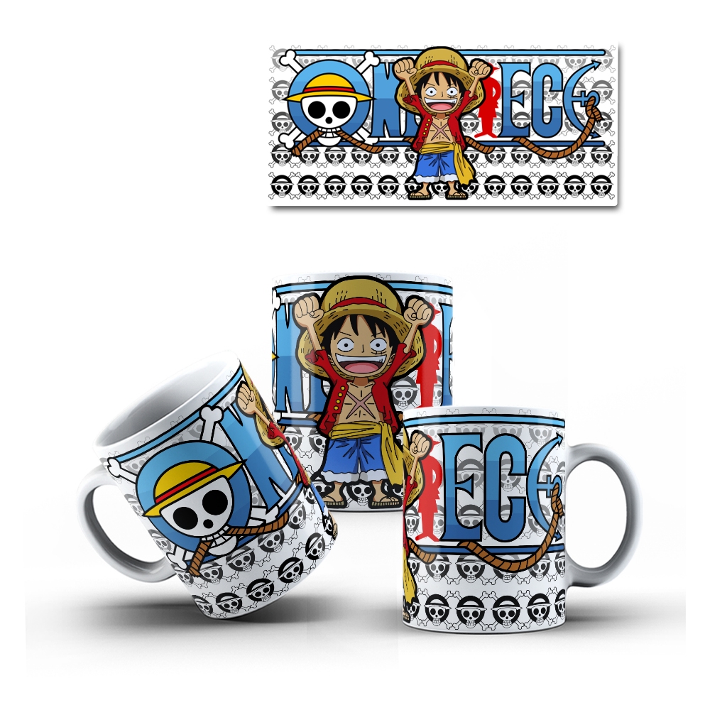 Caneca personalizada porcelana - anime One Piece Chibi Luffy Zoro Law Sanji Nami Usopp Robin Branba branca Ace Kaido Buggy Mihawk