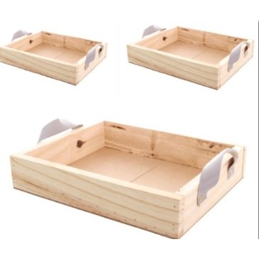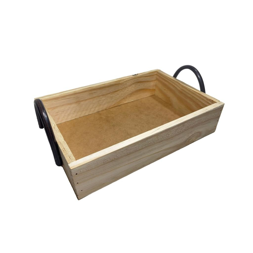 Cesta, caixa Bandeja café da manhã de madeira pinus tamanho P com alça