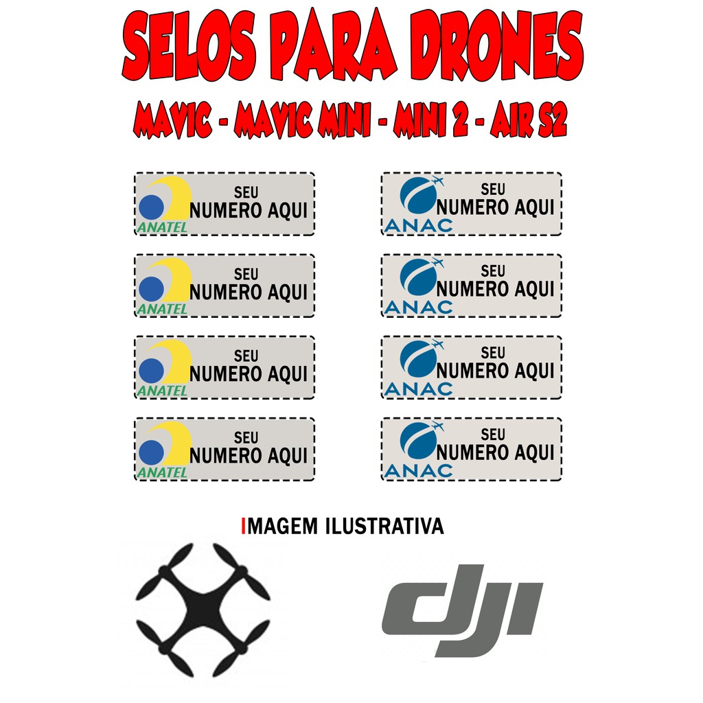 Selo Adesivo Anatel/Anac para Drone Dji Mavic Mini / Mini 2 / Air 2S