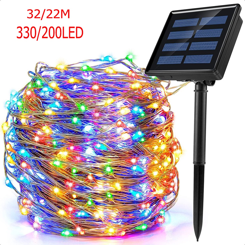 330LED 200LED 100LED 50LED 32/22/12/7M Luzes Solares Ao Ar Livre À Prova D'água 8 Modos Interruptor Festa De Natal Jardims E Outras Iluminação De Decorações