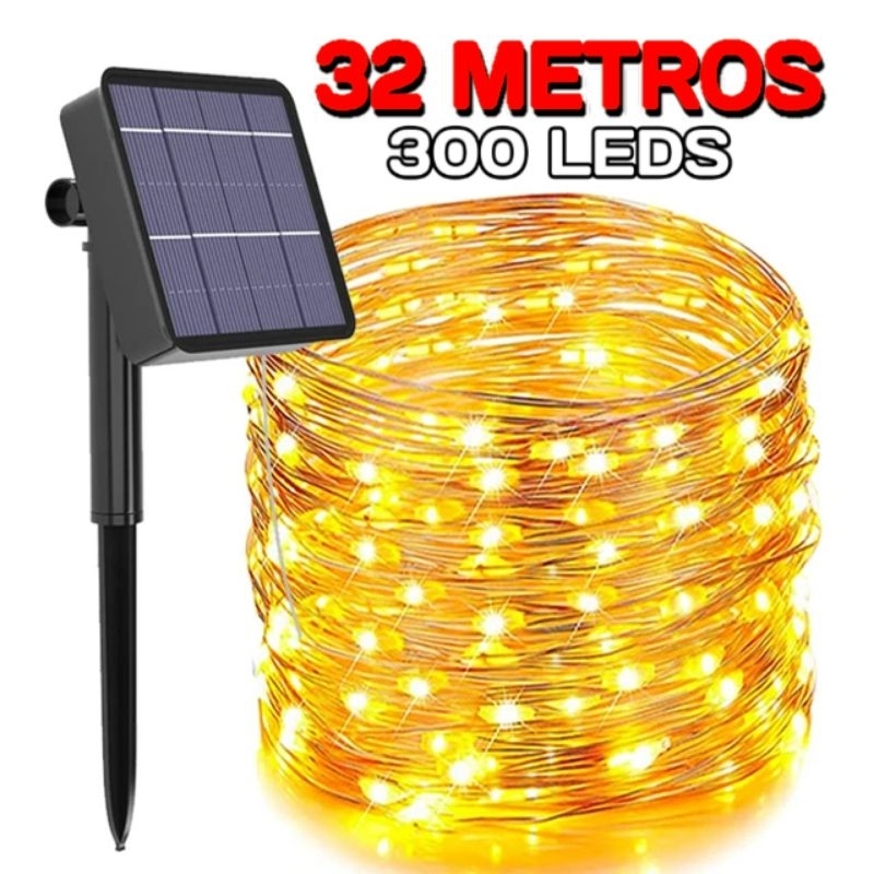 Pisca pisca 32 metros fio de fada solar led 300 lampadas luz amarelo