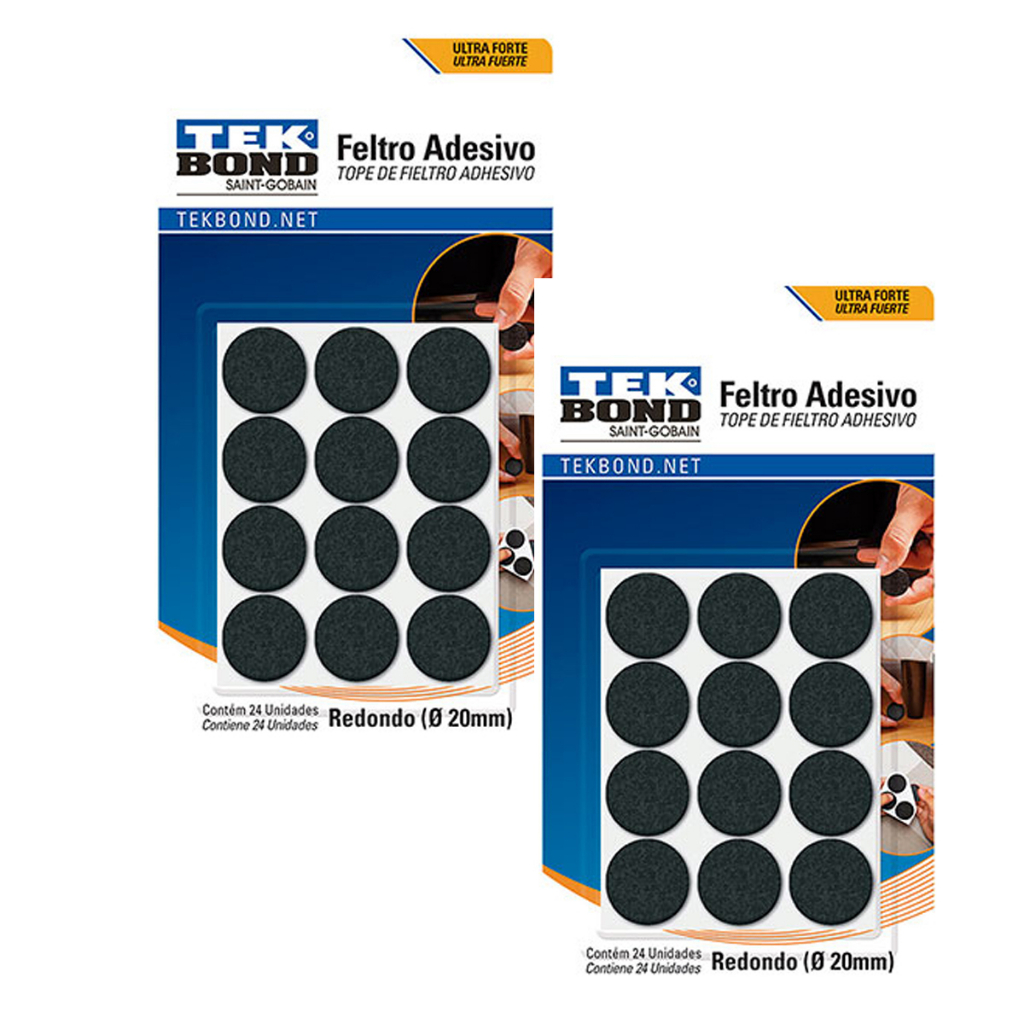 Kit 48 Feltro Protetor Adesivo Pé Sofá Cadeira Mesa Tekbond Redondo 20mm e 16 Feltro de 35mm