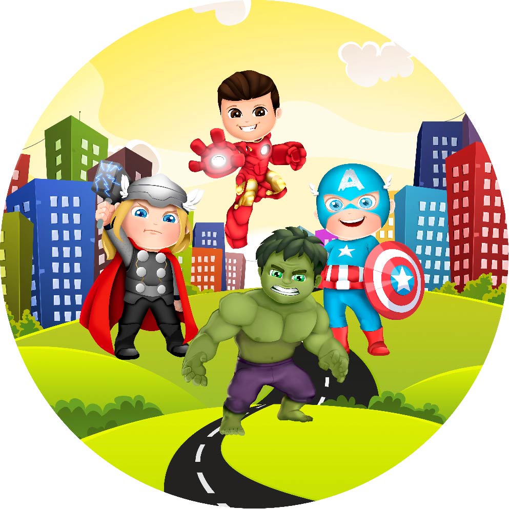 Painel De Festa Redondo Sublimado Em Tecido Tema Herois Baby