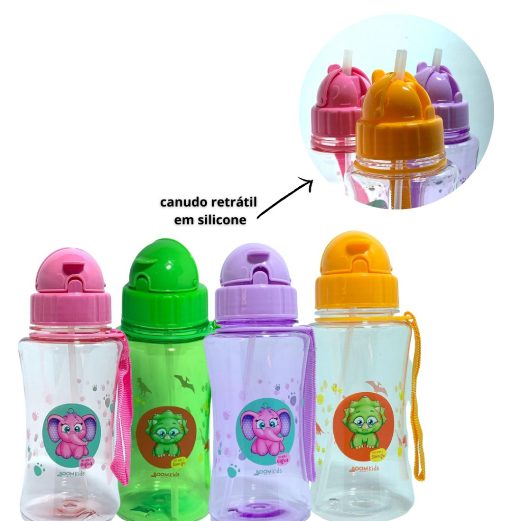 Squeeze Garrafa Garrafinha Copo de Agua infantil Criança Personagem C/ canudo silicone divertida 400ML
