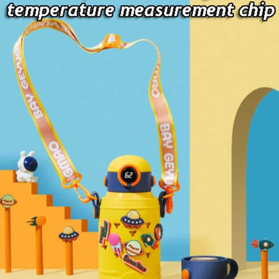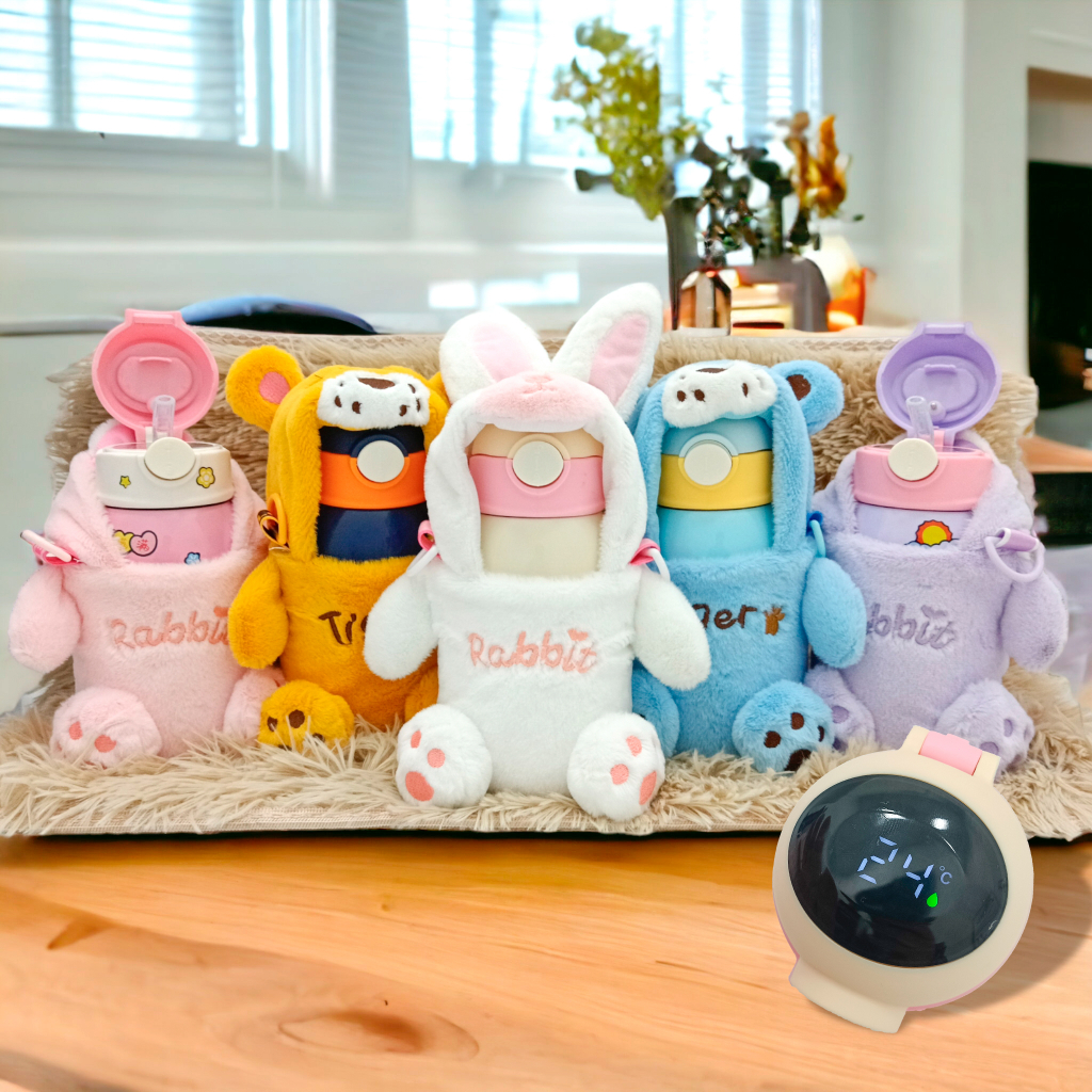 Garrafa Frasco Térmico Infantil Com Bolsa Pelúcia Bico Silicone Com Led Temperatura Aço Inox Garrafinha de Água Térmica Bolsa Criança Anti-Vazamento com Trava