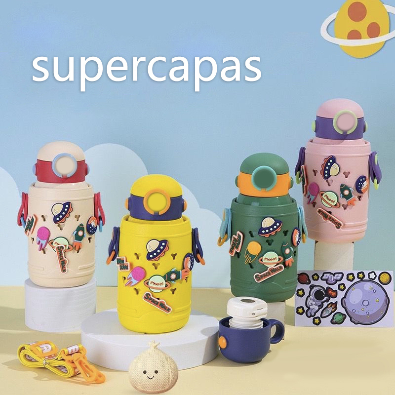 Garrafa Garrafinha de Água Infantil 500 ml Térmica Com Alça Canudo Adesivos Livre BPA Para Crianças