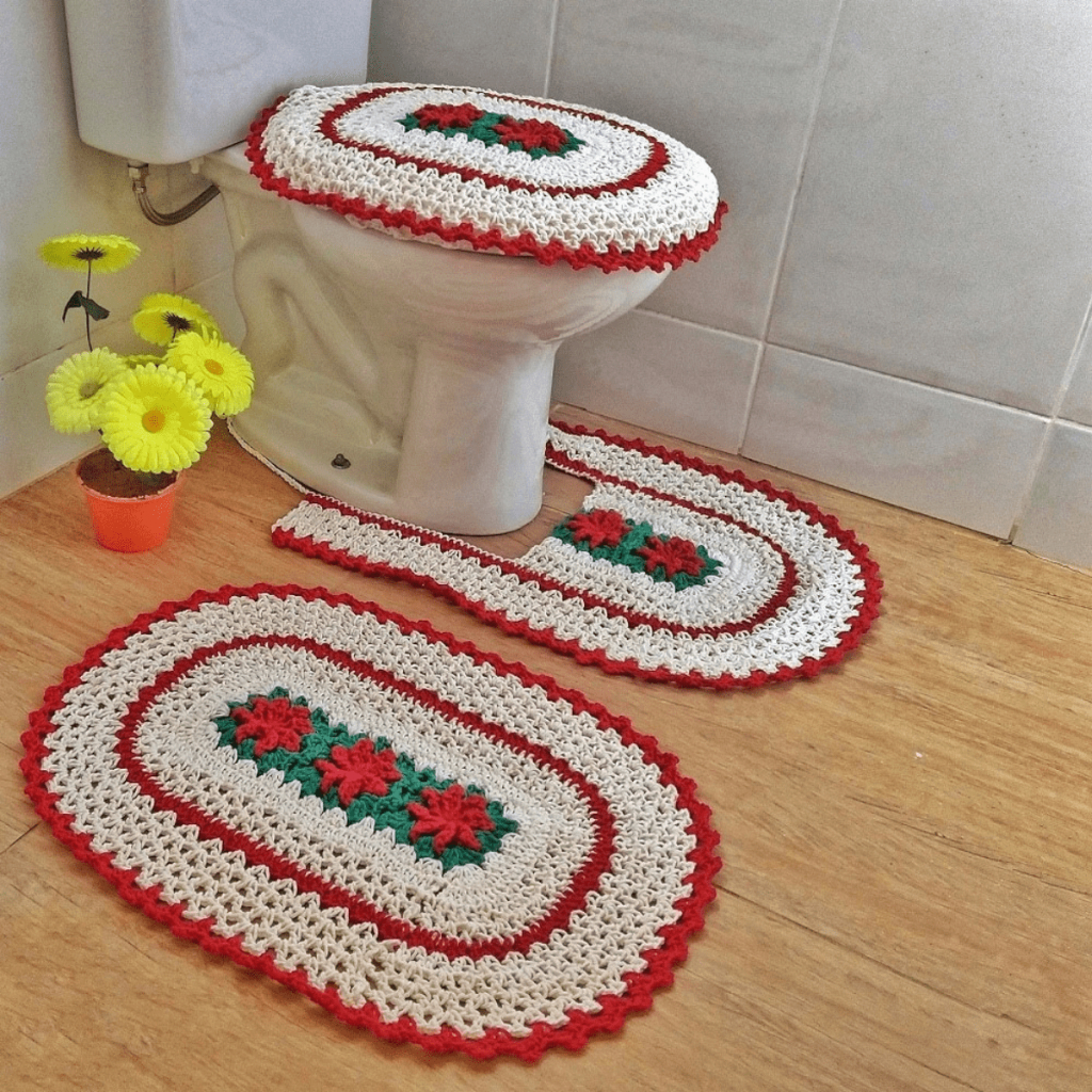 Tapete De Crochê Jogo De Banheiro 3 Peças Kit Flor Artesanal