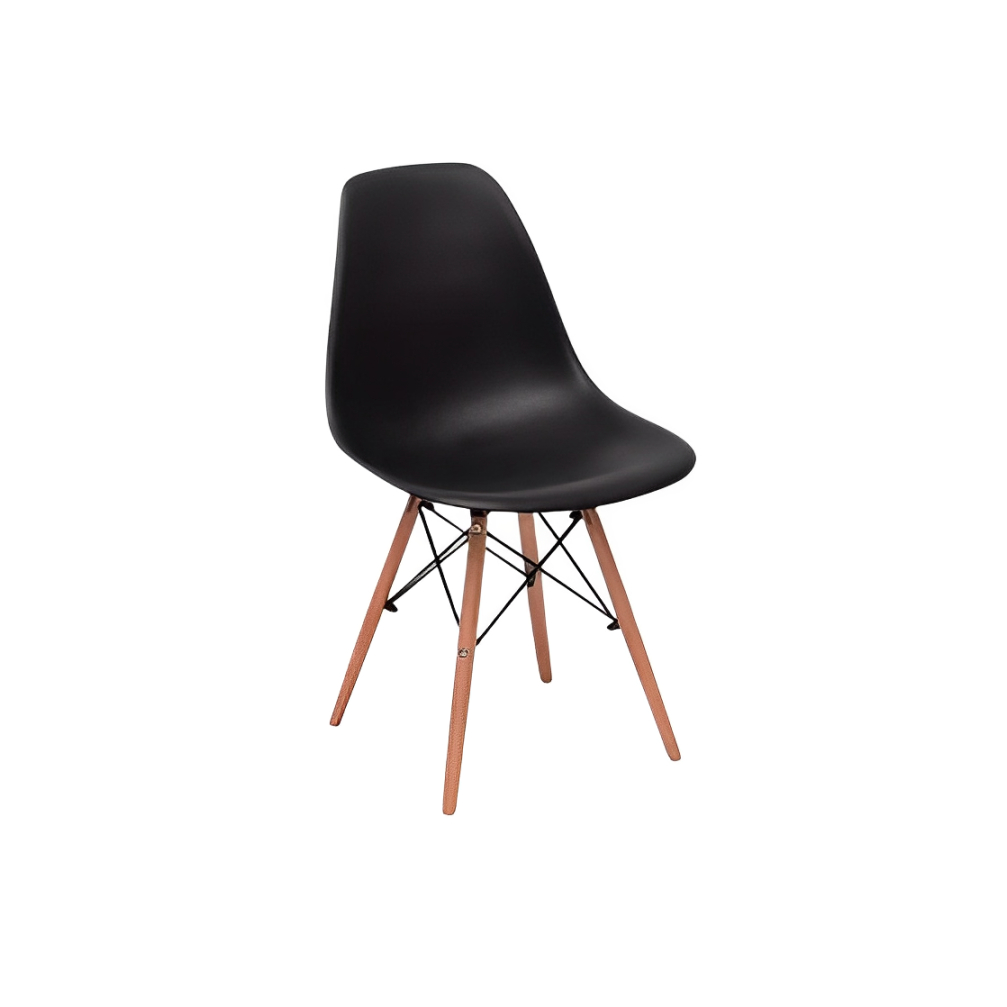 Cadeira Quarto Escritório Sala Charles Design Eames Eiffel Wood - Preta