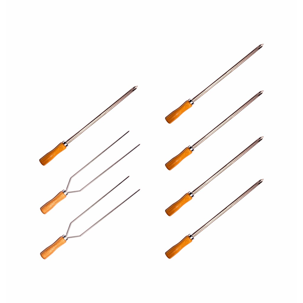 Kit com Mini Espetos para churrasco em Aço Inox com cabo de madeira 40cm (Simples e Duplos) - Espetinho