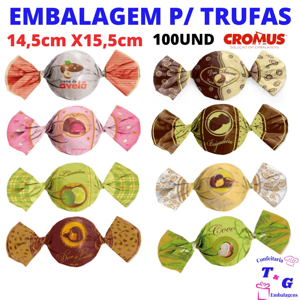 Embalagem Para Trufas e Bombons Sabores Cromus /14,5x15,5cm / 100un