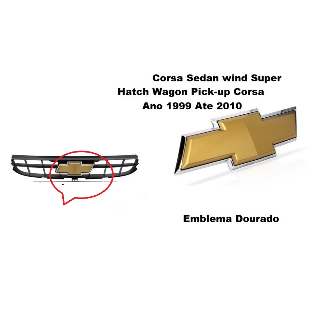 Emblema chevrolet GM Grade Para-choque Corsa Classic Dourado 2000 2001 2002 2003 2004 2005 2006 2007 2008 2009