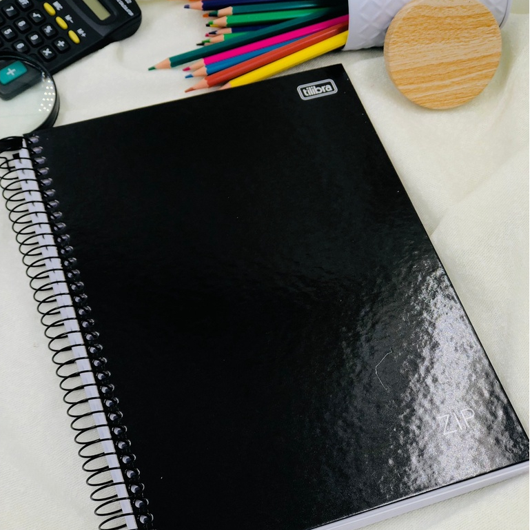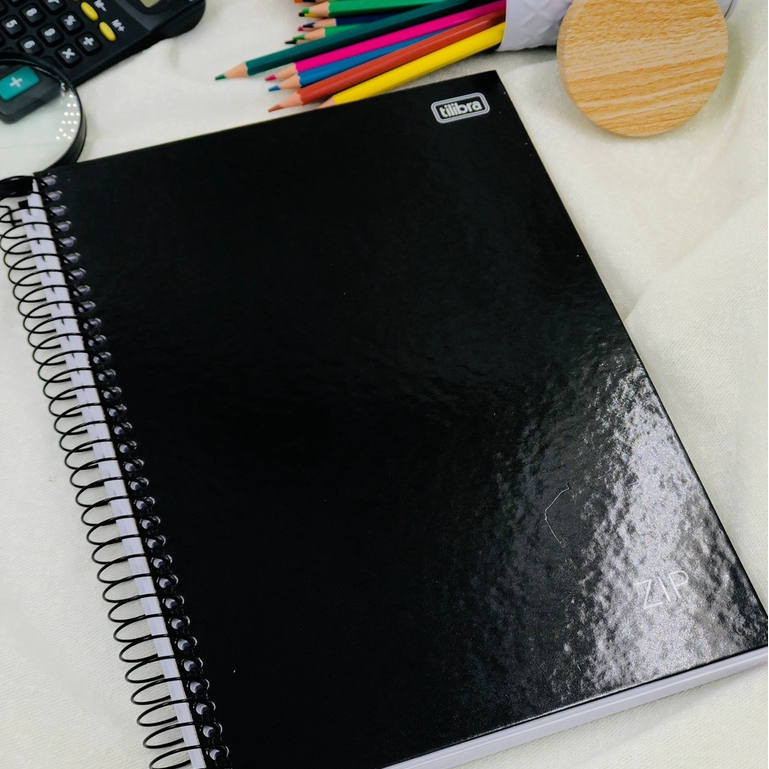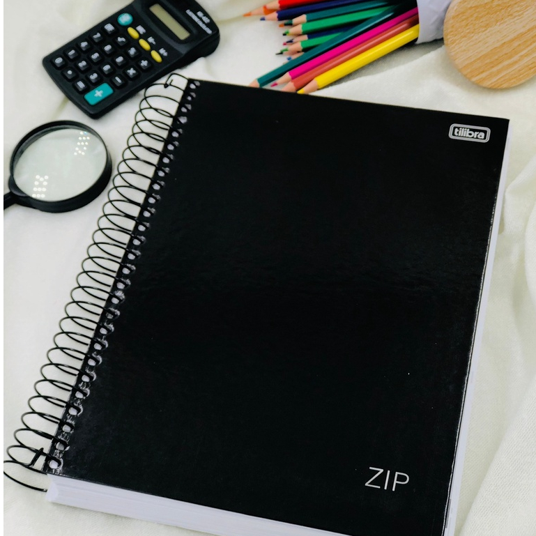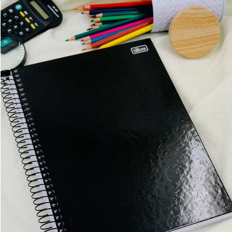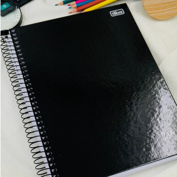 Caderno Escolar zip Capa Dura Preto 10 Matérias capa preta 160 Folhas Tilibra