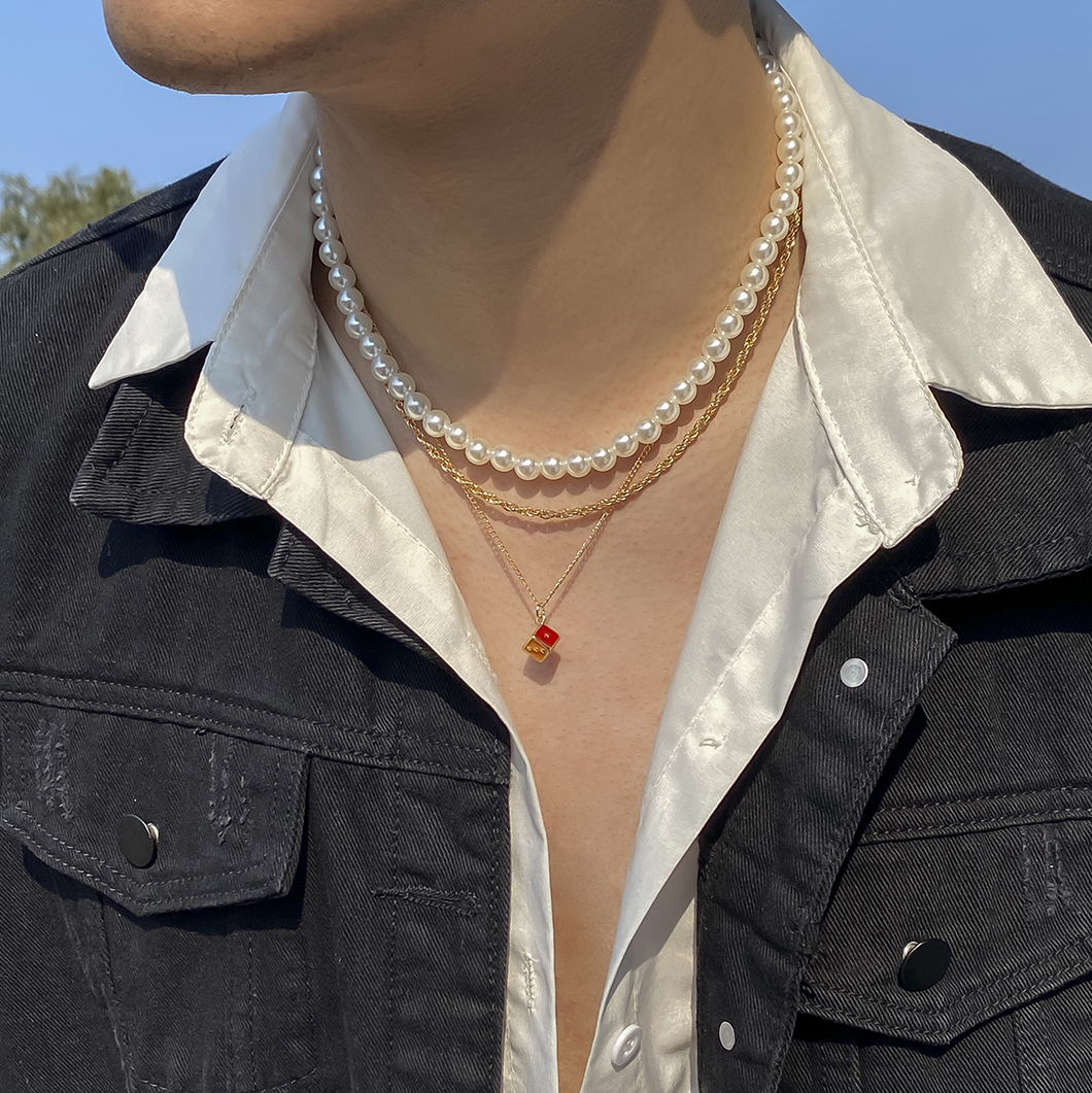 3 Pcs/Set Corrente Em Camadas Separáveis Com Colar Pingente De Dados Lucky Dice Pendant Para Homens De Pérolas Da Tendência Gargantilha Curta 2023 Jóias De Moda No Pescoço Acessórios Presentes Masculinos