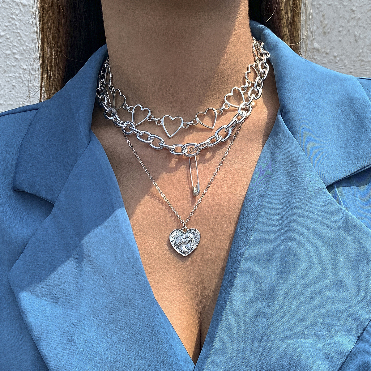 3 Pcs Corrente Espessa Em Camadas Separáveis Com Colar De Pingente De Coração Para Mulheres Gargantilha De Chian Na Moda No Pescoço Acessórios De 2023 Jóias Decoração De Presentes Femininos