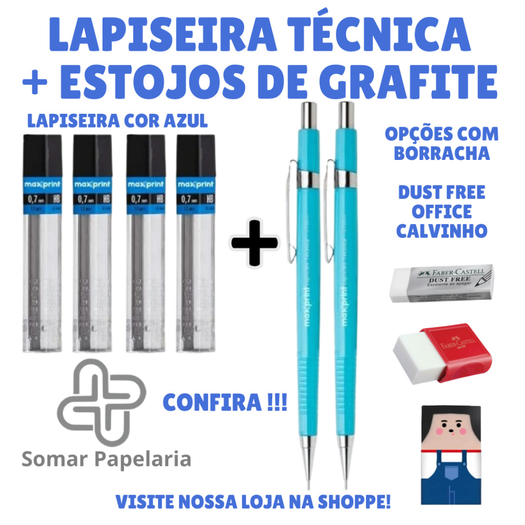 Lapiseira Técnica 0,7mm Azul + Estojos de Grafite