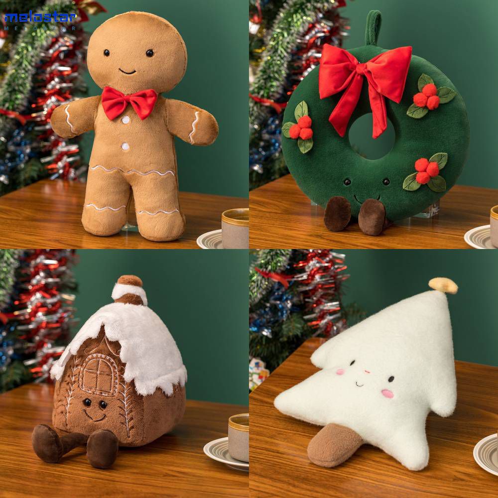 Boneca de pelúcia de Natal e árvore de Natal Guirlanda de casa fofa Árvore de Natal Boneca de desenho animado Travesseiro Almofada Sofá Ornamento Fofo Homem Biscoito Brinquedo de pe