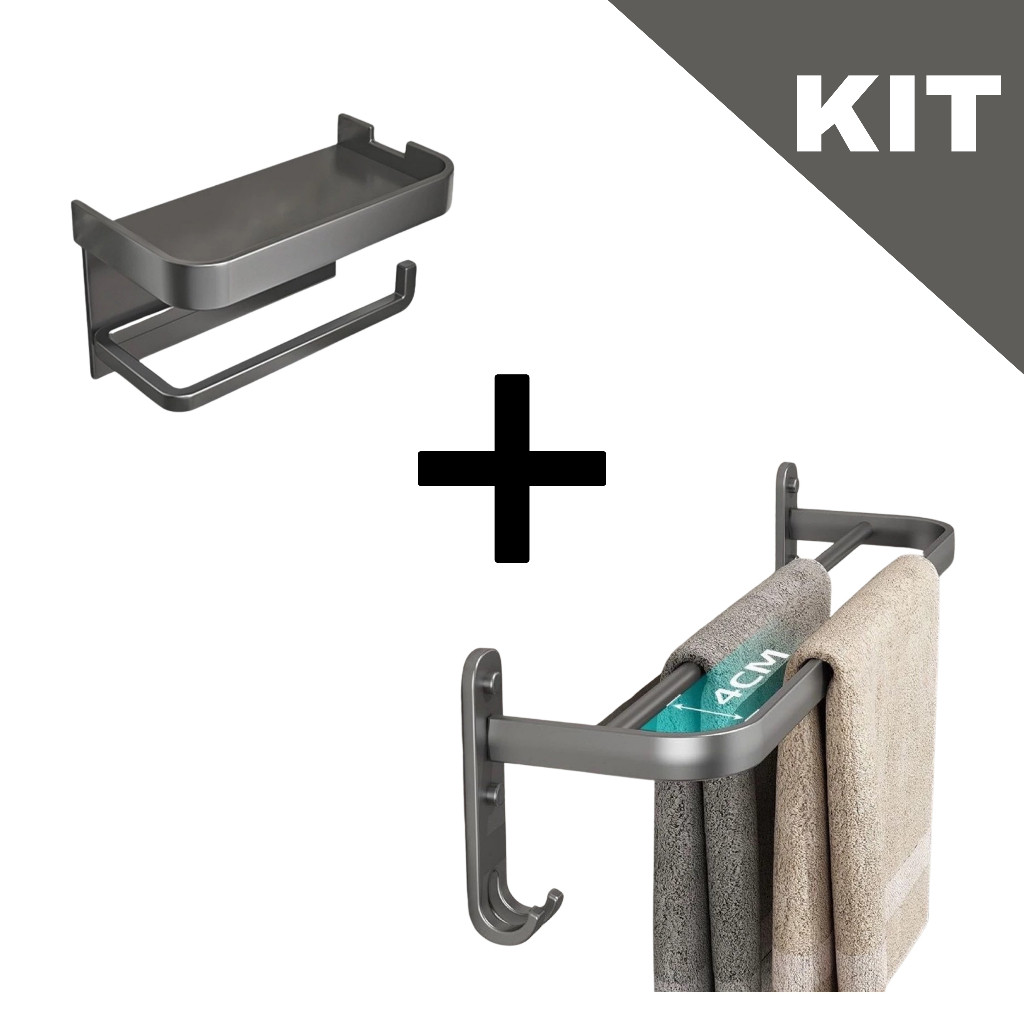 KIT Suporte Papel Higiênico de Banheiro + Suporte Banheiro Porta Toalha Toalheiro De Banho