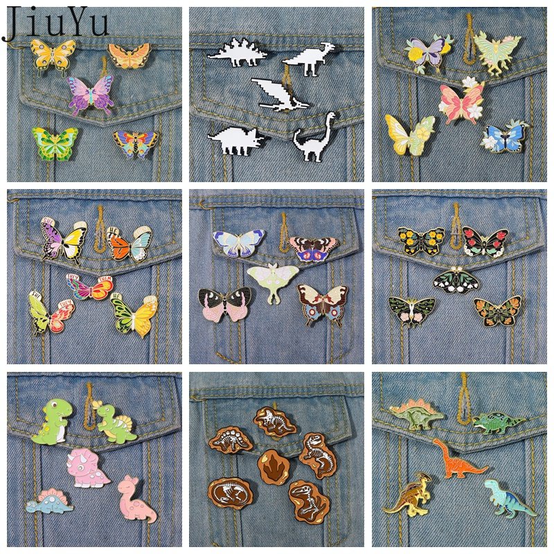 5 Pcs/Set Retro Borboleta Esmalte Animal Bonito Dinossauro Lapela Broches Crachá Cartoon Flor Broche Jóias Acessórios Gift
