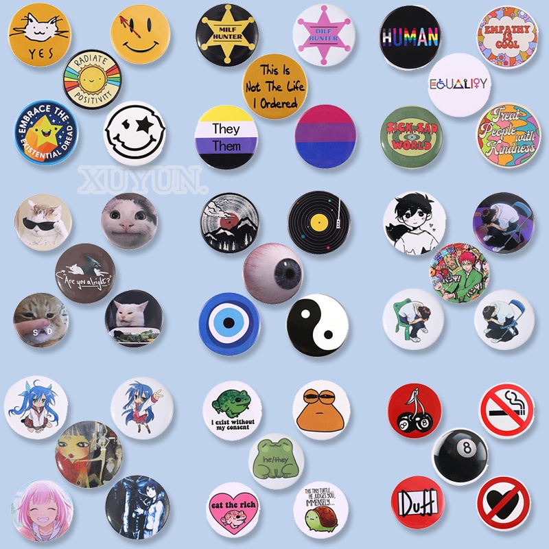 4-5pcs/Conjunto Desenho Animado Gato Pin Anime Texto Sorridente Folha De Flandres Broche Lapela Crachás Joias Presente Para Amigos