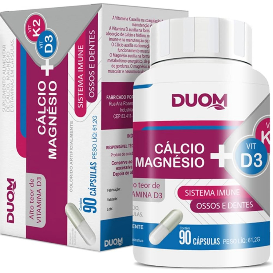 CÁLCIO + MAGNÉSIO + VITAMINAS K2 E D3 COM 90 CÁPSULAS DUOM