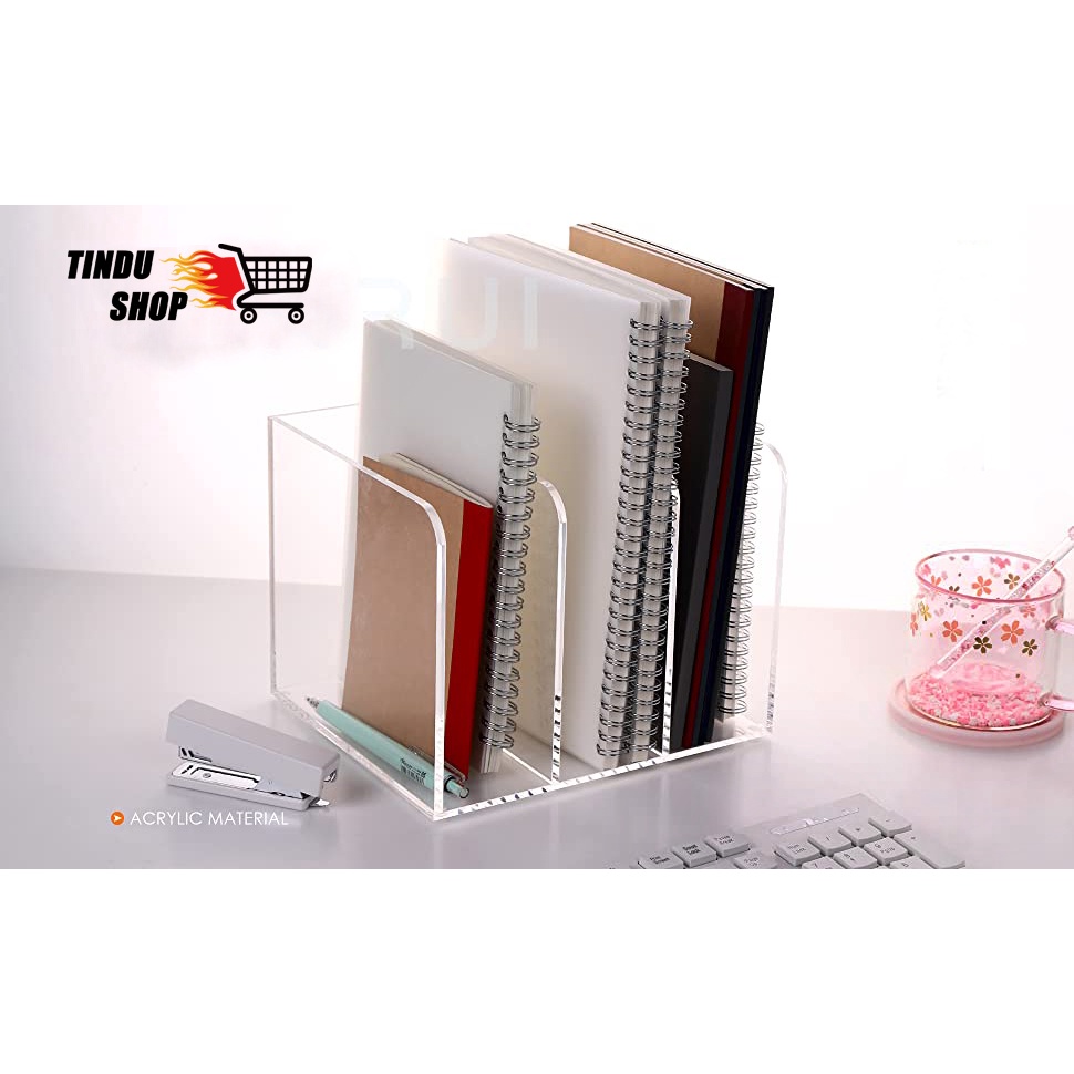 Organizador de acrílico para escritório com divisórias para livros e revistas