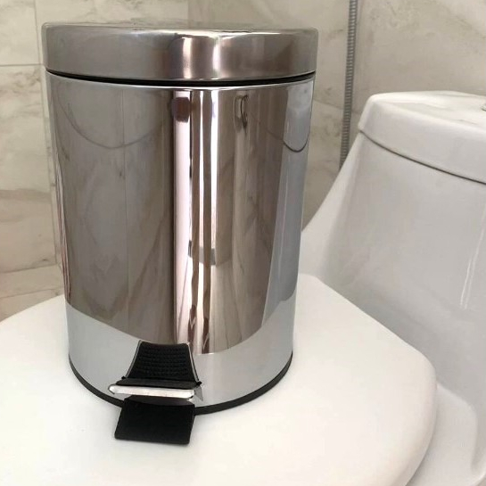Lixo Lixeira Redonda 5 Litros Aço Inox Balde Cesto Removível Alça Pedal Para Banheiro Escritório Lavabo Cozinha Fraldas Bebe Casa Restaurantes Pet Pia Powermaid