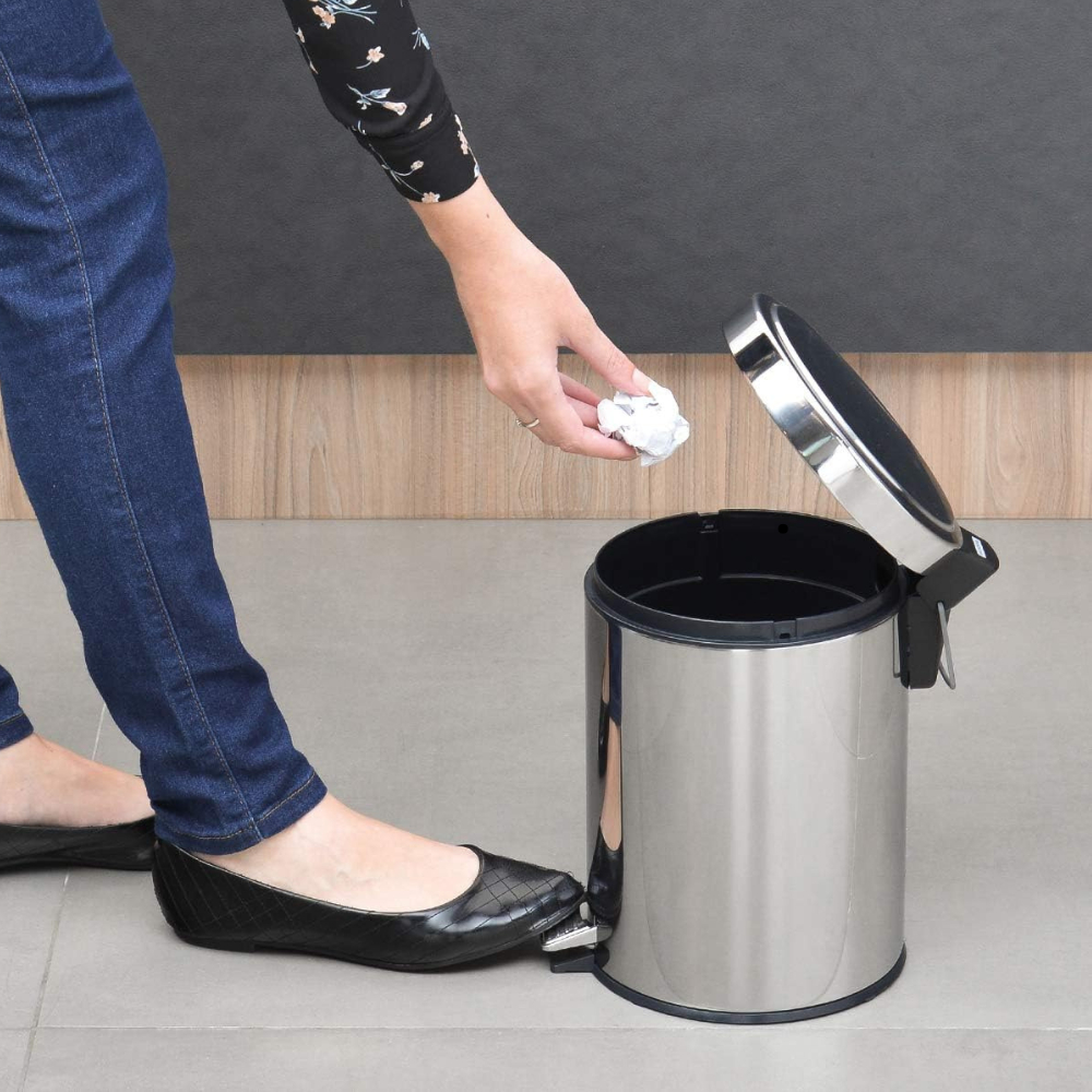Lixeira Cesto de Lixo Aço Inox com Pedal Balde Interno e Tampa Redonda 3L 5L e 12 Litros Banheiro Escritório e Cozinha
