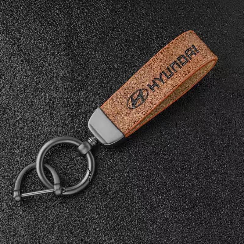 Logotipo Do Carro De Couro Chaveiro Titular Anel Chave Fivela De Liga De Zinco Para Hyundai Acessórios