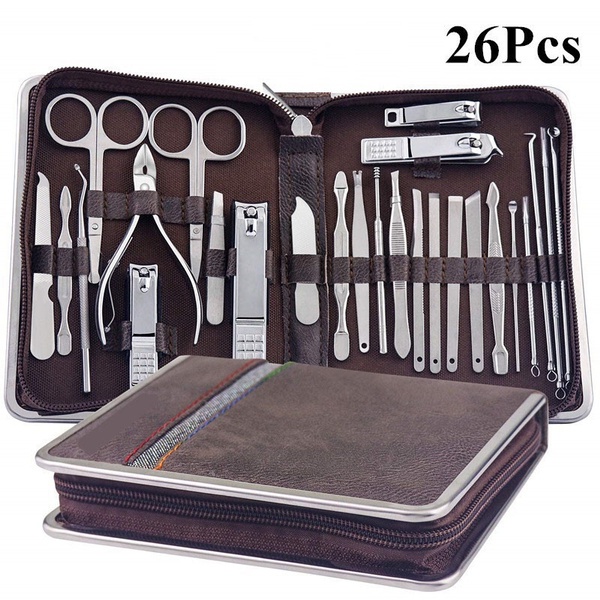 Aço Inoxidável Kit Manicure Pedicure Tesoura Cortador De Unha Aparador Earpick Grooming Pinça Conjunto De Ferramentas