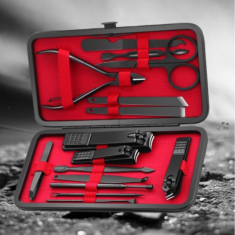 Kit 15 peçasm, Cortador De Unhas De Aço Inoxidável Trimmer Earpick Grooming Kit Manicure Pedicure Tesoura Pinça Conjunto De Ferramentas Com Caixa De Viagem De Couro Preto
