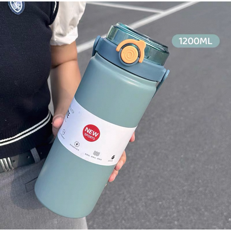 Garrafa Térmica de Viagem Aço Inox 316 1200ml Água Café com Canudo Alça