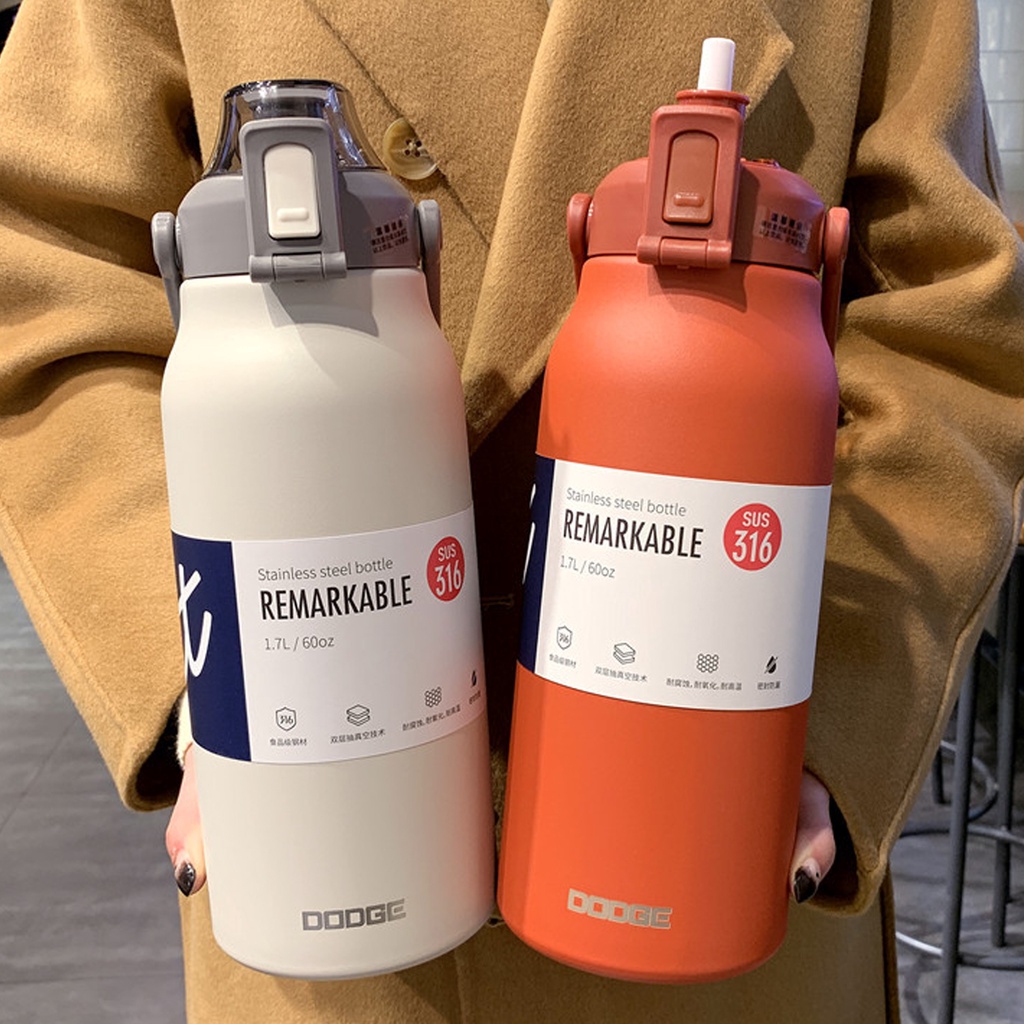 Garrafa 1300ml ou 1700ml Aço inoxidável 316 Térmica De Água Café Parede Dupla Com Alça