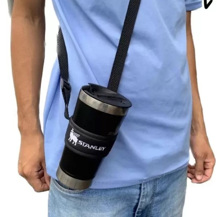 Kit Copo Caneca Térmico com cordão tirante porta Copo Térmico Stanley Com Tampa e Abridor 473ml Cerveja Café Inox Aço Resistente e Antideslizante