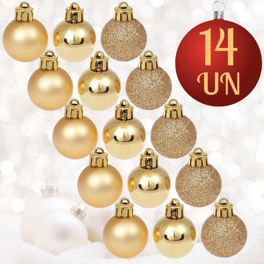 Kit 14 Bolinhas De Natal 3cm Fosca Glitter Lisa Enfeites
