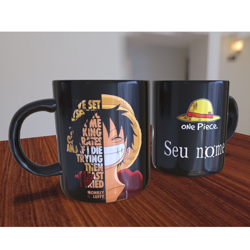 Caneca Anime One Piece Monkey D. Luffy Frases com Seu Nome Xícara Personalizada Presente Porcelana