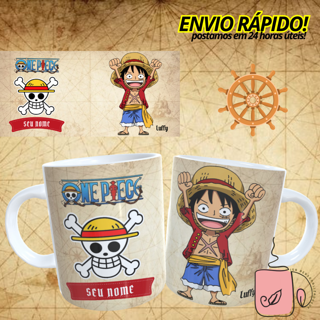 Caneca Anime One Piece Monkey D. Luffy Frases com Seu Nome