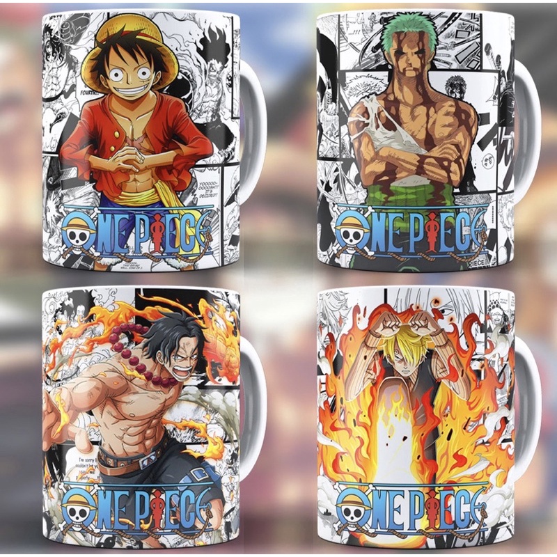 Caneca de porcelana One piece Ace Luffy Sanji Zoro lançamento personalizada com nome