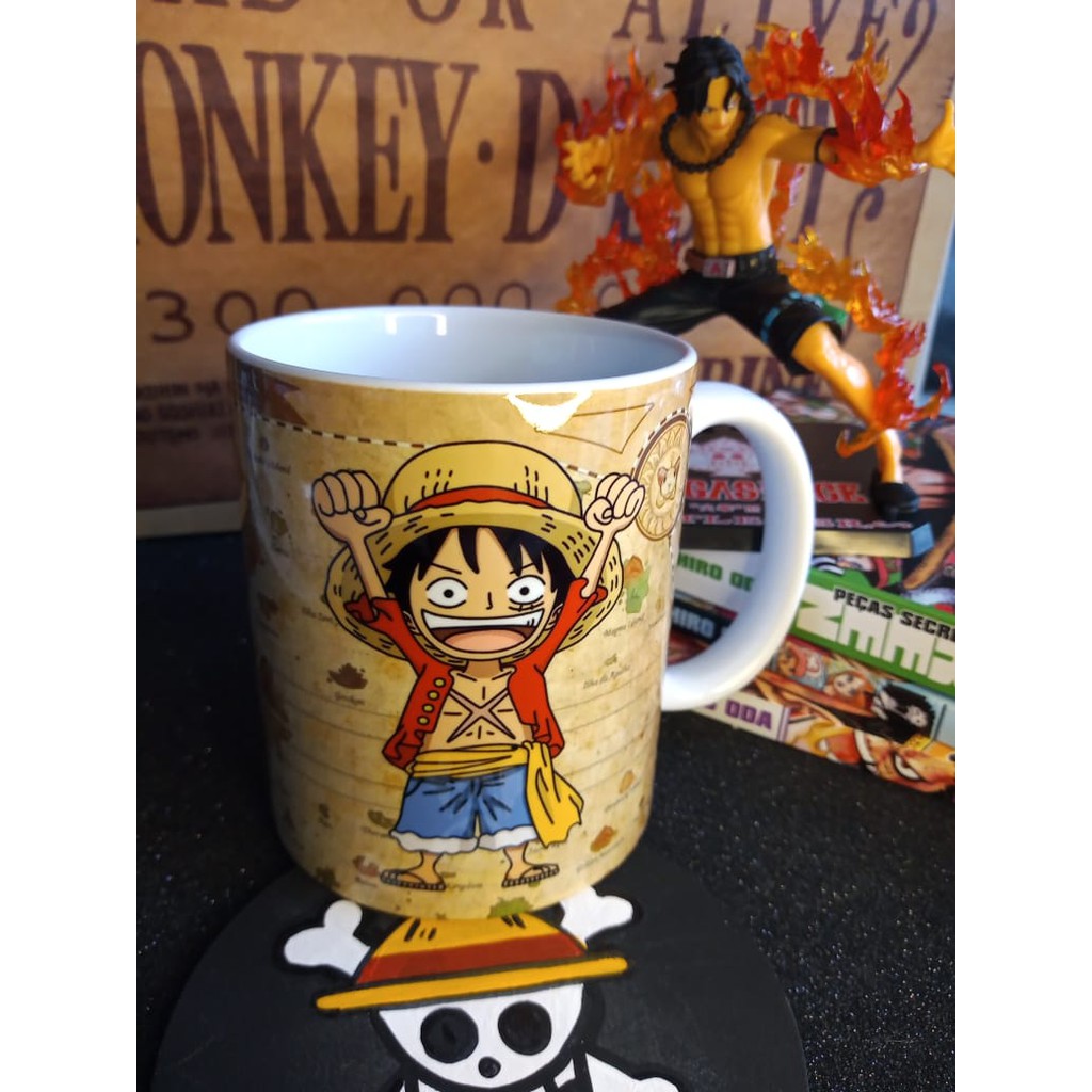 Caneca personalizada porcelana - anime One Piece Chibi Luffy Zoro Law Sanji Nami Usopp Robin Branba branca Ace Kaido Buggy Mihawk