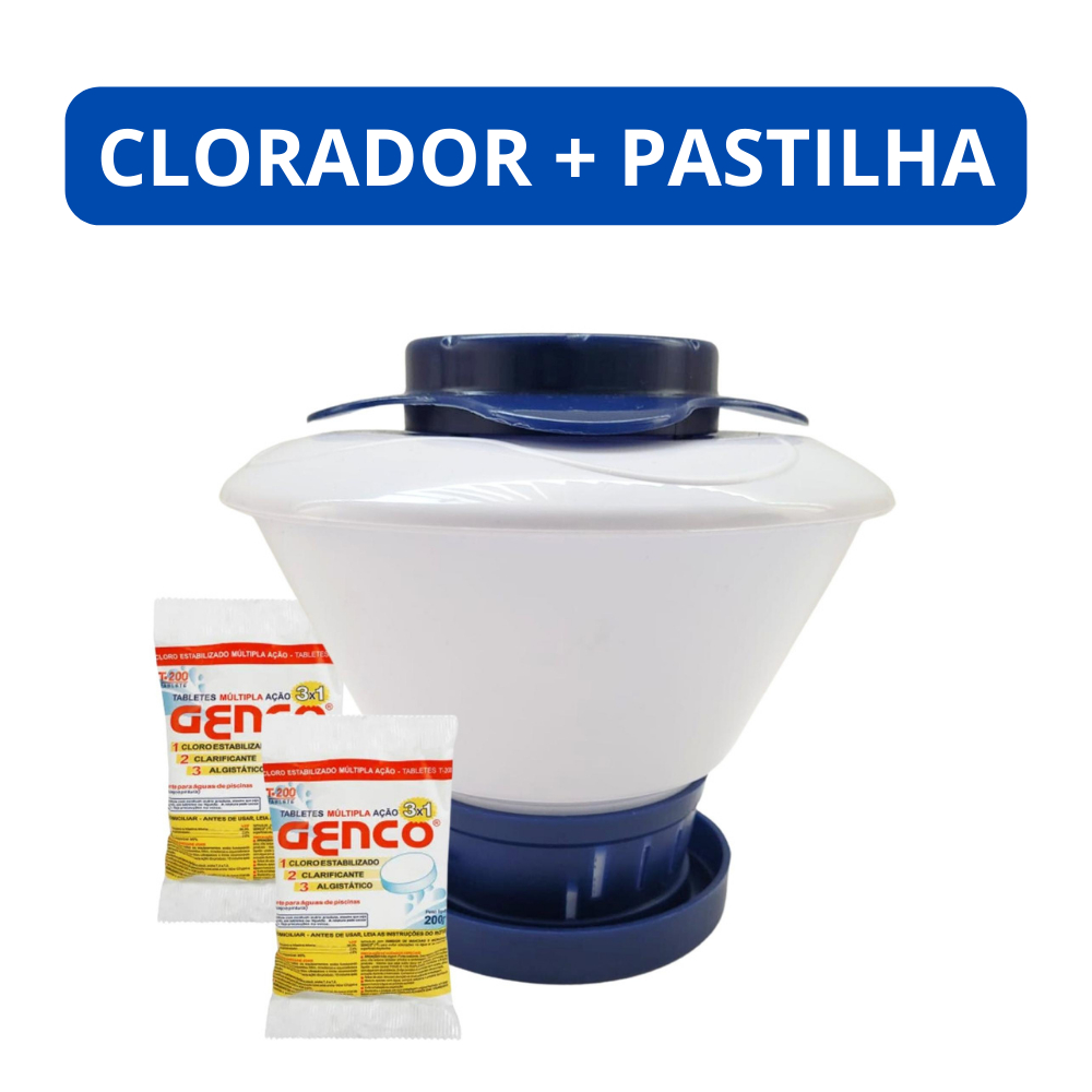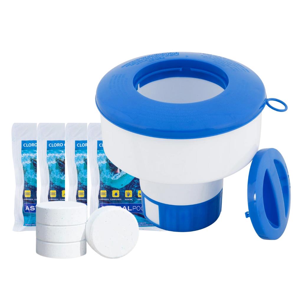 Clorador + 1 kg Cloro Pastilha para Piscina - 5 Pastilhas de 200g + Dosador de Cloro Flutuante
