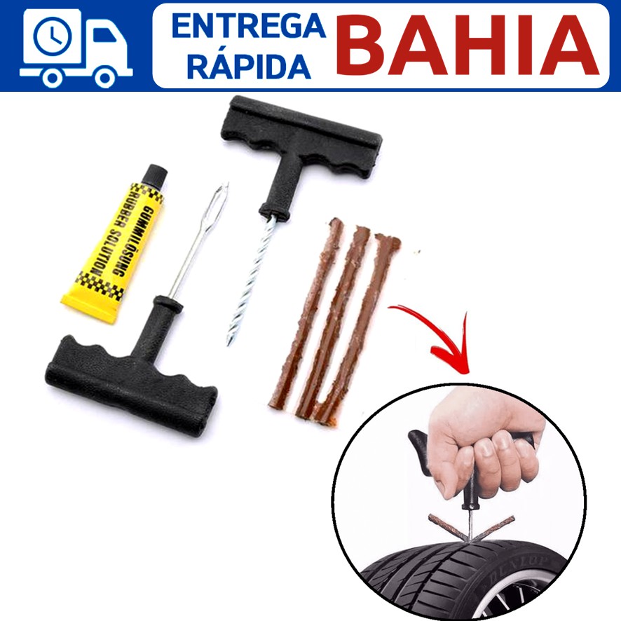 KIT Remendo Pneu sem Câmara Reparo Aplicador Escareador Cola Macarrão Refil Tarugo Carro Moto Barato - Estoque BAHIA