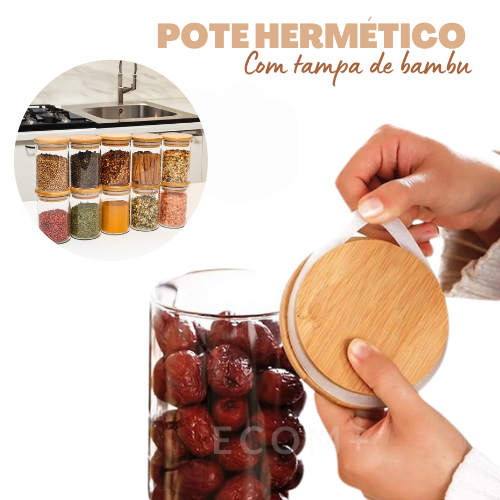 Kit 10 Potes De Vidro Hermético Para Tempero Com Tampa De Bambu 200ml - Alimentos - Mantimentos