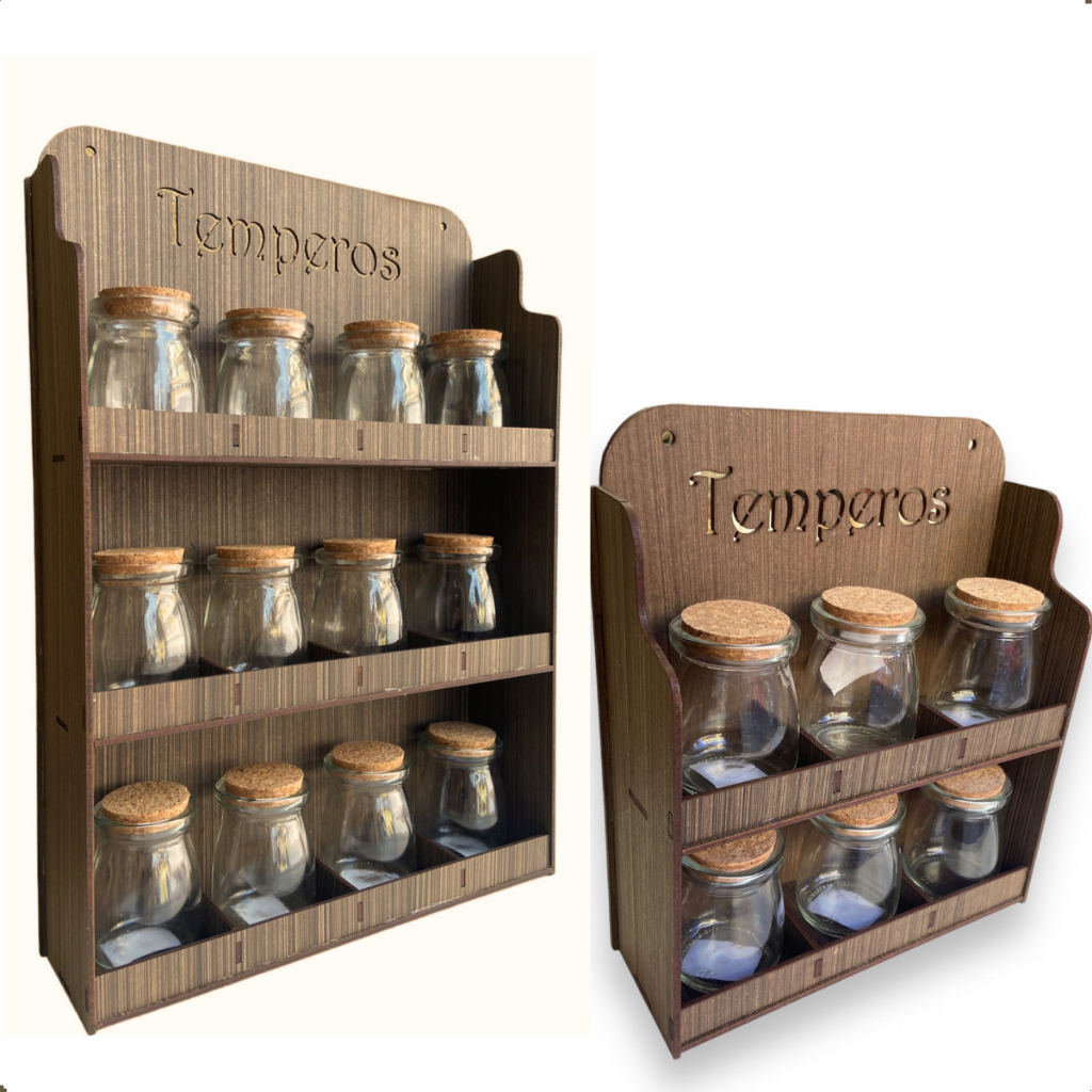 Prateleira Porta Condimentos Suporte Em Madeira Porta Tempero de Parede 12 Potes de Vidro