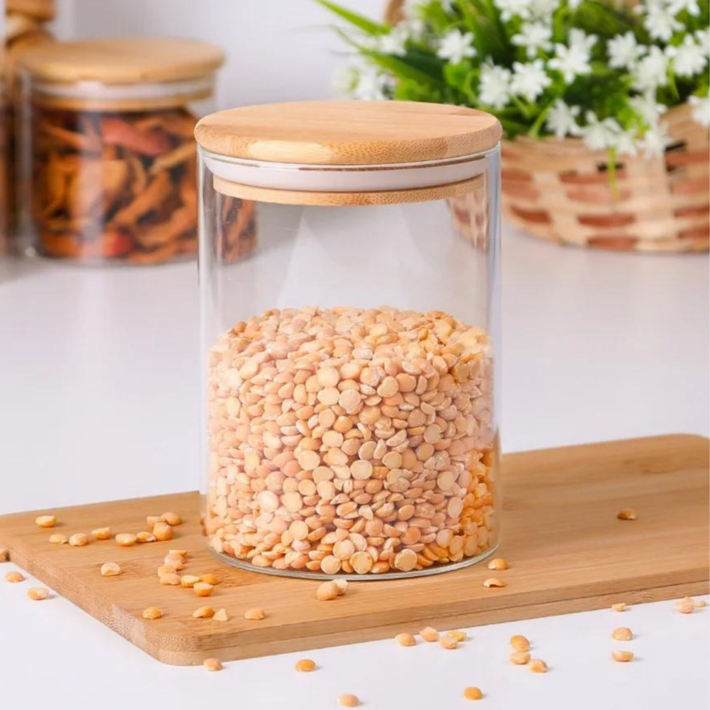 Pote de Vidro Hermético Tampa Bambu 750ml Pote de Mantimentos para Cozinha Biscoito Condimentos Porta Mantimentos Tempero Pote Hermetico Vidro Pote Mantimentos Hermético Condimentos com Tampa de Madeira Bamboo Cozinha