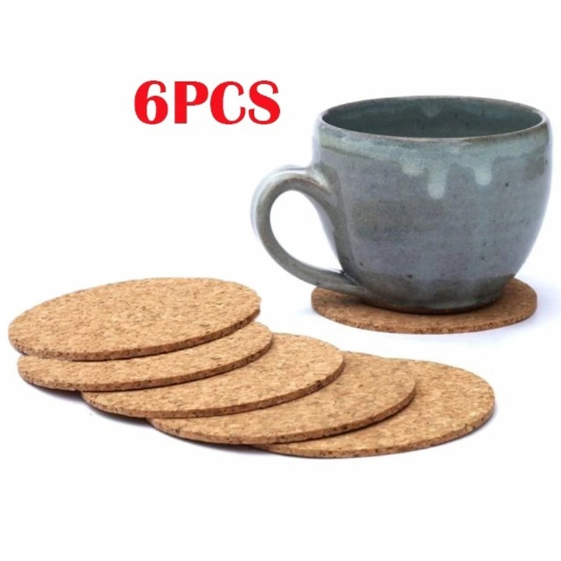 6pçs Porta Copo Redondo De Cortiça/Isolamento Térmico Para Café/Chá/Talheres Antiderrapante De Madeira