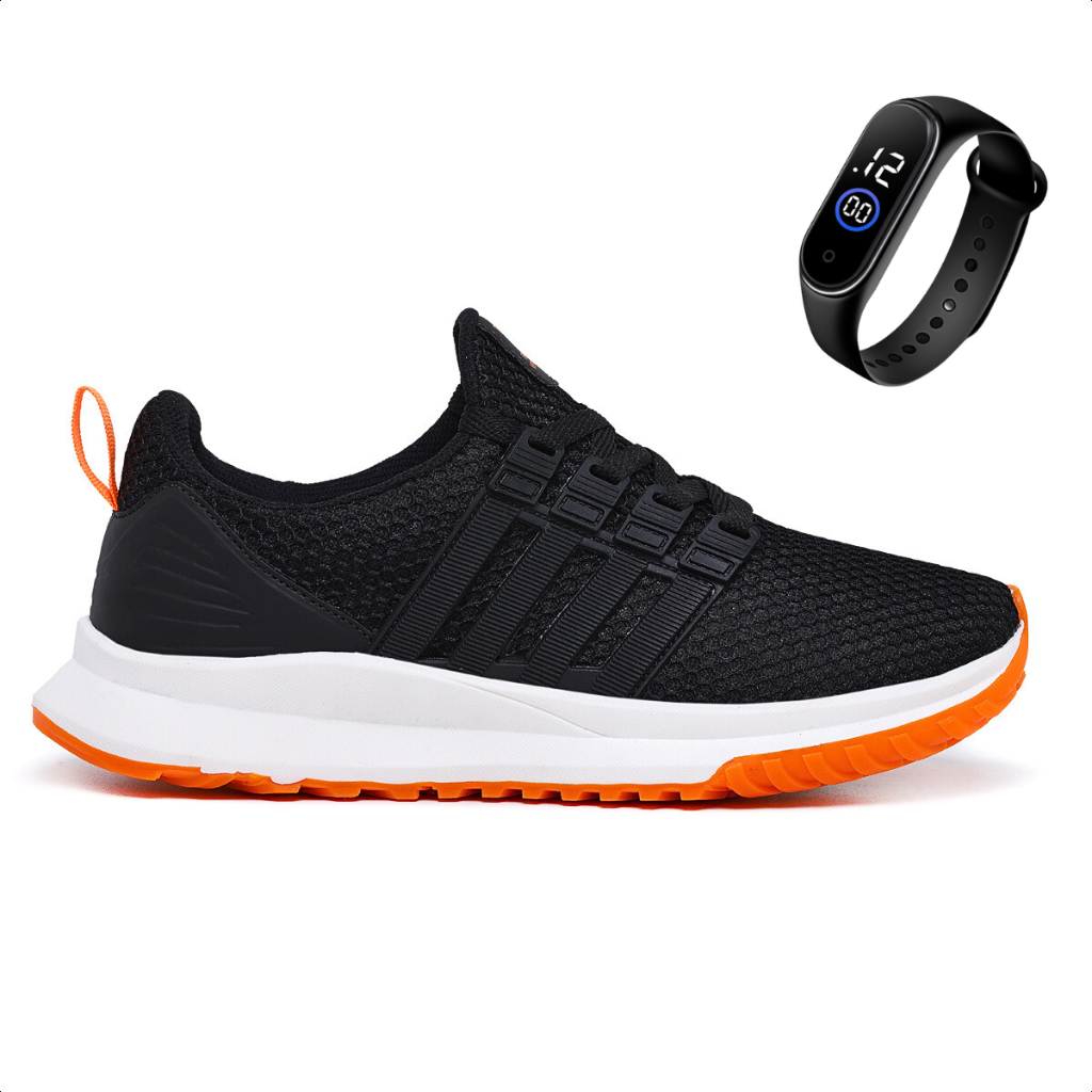 Tênis academia esportivo masculino feminino preto 34 ao 45 corrida caminhada confortável macio leve promoção
